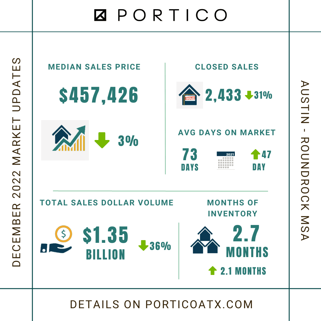 Demand in the Austin area housing market remains high and with continuing challenges in supply chain, construction cost and labor issues inventory level remains an unknown for 2023. There is a 6 week lag in market data provided by the Austin Board of Realtors, but a licensed and experienced Realtor can provide insights into how the market is shifting and moving in real time. If buying a home is in your plans for 2023, now is a good time to build your relationship with your Realtor and start watching the market closely.