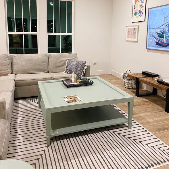 We recently turned this dark wood table into a bright coffee table by applying a few layers of primer and paint. You can do this to doors, side tables, shelves, walls, etc.