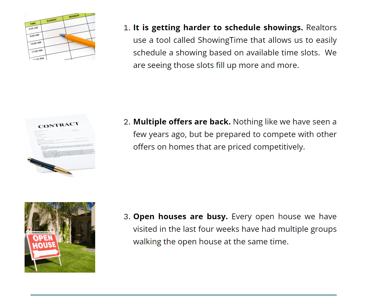 To summarize, data shows that the market is starting to get more busy and we are seeing more buyers out in the field looking. Buyers might be scoping out the market to start jumping in when the rates start decreasing.
