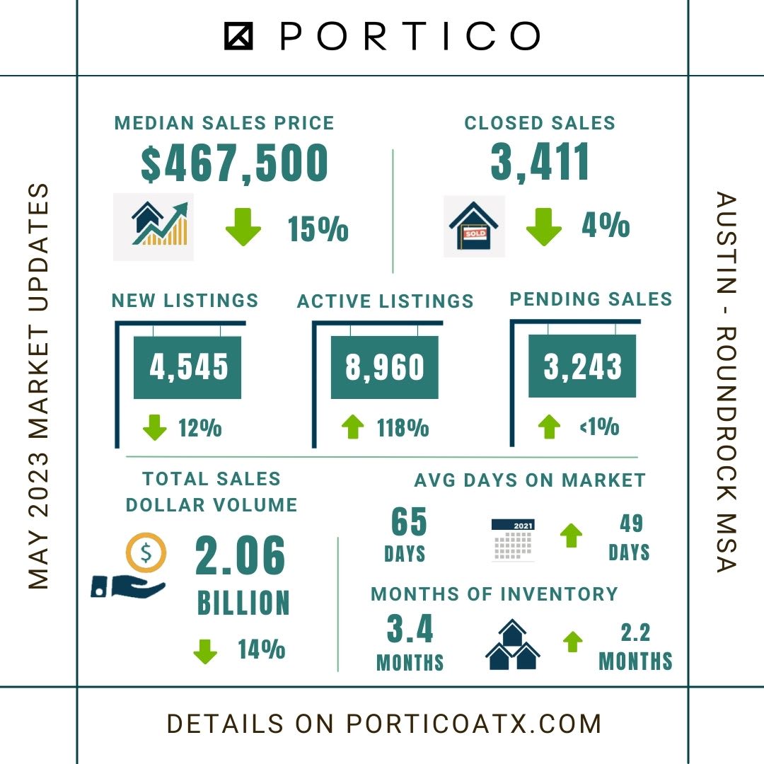 In May, Austin area homes sold for 94% of their original list price, indicating that sellers are pricing more accurately. May 2022 saw a median home price of $550,000, but this year’s $467,000 is still up 44% compared to pre-pandemic times.